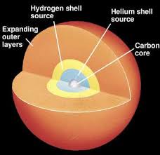drugu nuklearnu reakciju u kojoj helijum prelazi u ugljenik. Za to vreme omotač se proširio od više desetina do stotinu puta, a boja zvezde postaje